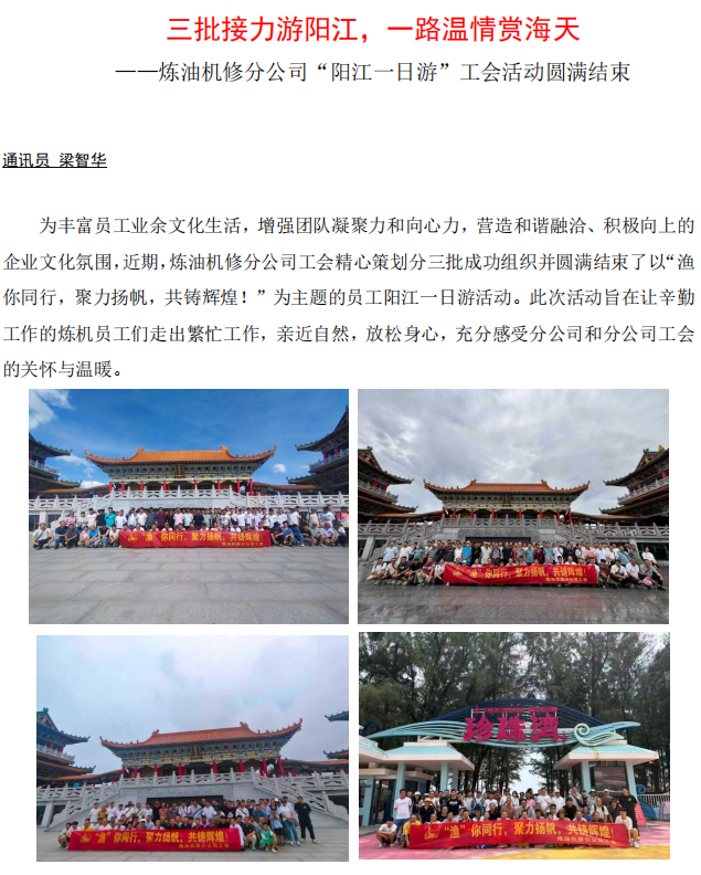 煉油機修分公司“陽江一日游”工會活動圓滿結束
