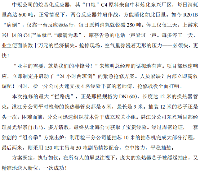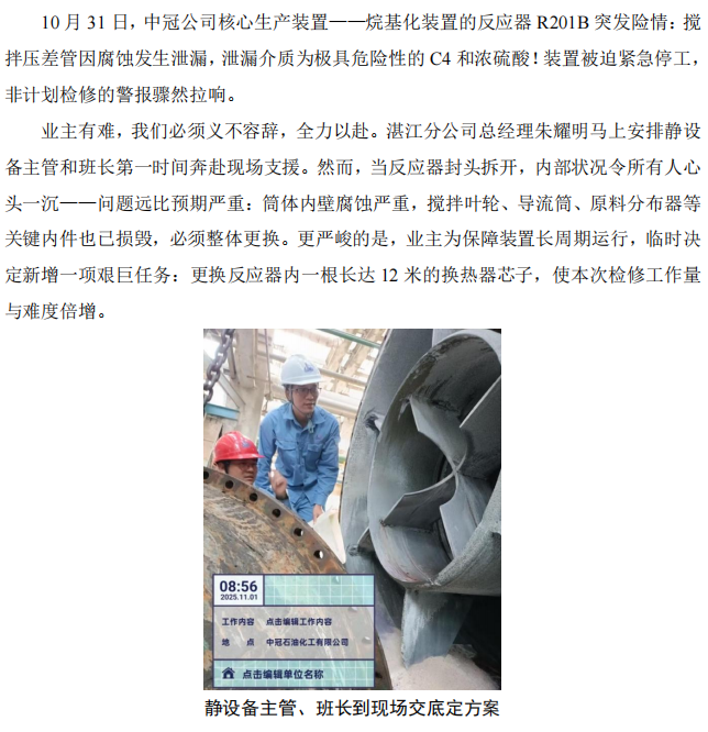 湛江分公司中冠項目部搶修烷基化反應(yīng)器紀實