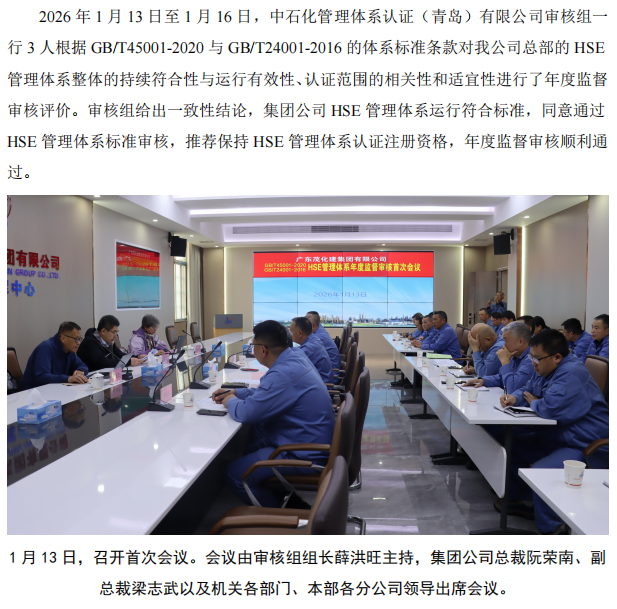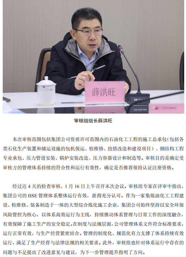集團(tuán)公司順利通過(guò) HSE 管理體系年度監(jiān)督審核